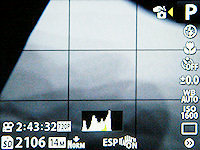 The Olympus Stylus Tough 6020 shows you plenty of on-screen information in shooting mode; that includes exposure details, camera settings, a live histogram, optional 3 X 3 gridlines as well as atmospheric pressure and altitude. The only thing missing here is a battery indicator.