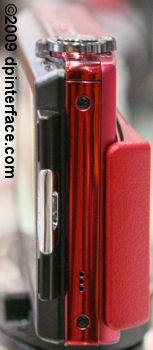 At the bottom of the camera is the memory card/battery compartment, tripod mount as well as a connectivity port for USB and A/V Out (the Sony T500 supports USB 2.0 High-speed).