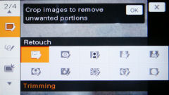 As for the fancier features, you can even “retouch” photos and apply various effects to them (including drawing on photos via the included “Paint Pen” aka stylus) as well as use the nice slideshow feature to automatically play back with transition effects and background music.